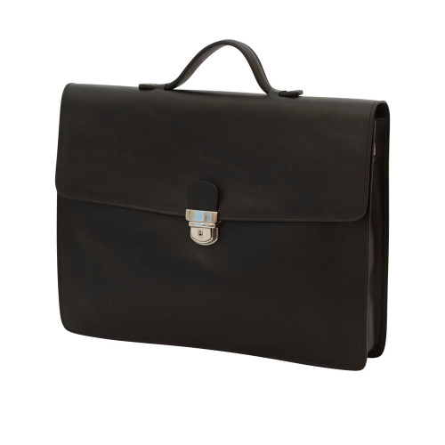 A traditional briefcase handmade in Florentine smooth Italian leather It has a single top leather covered handle, flap over opening that is secured by a lockable central push lock with key and a roomy rear external zip pocket. The inside is leather lined and has single inner compartment with large side compartment. A useful addition is a detachable leather shoulder strap when you need to be hands free.