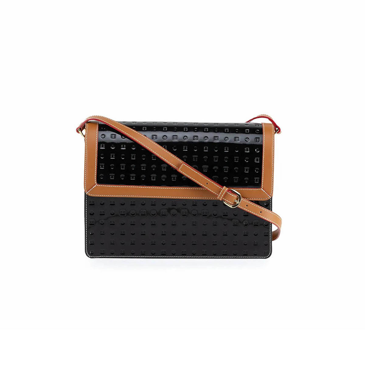 Allday stylish patent leather shoulder handbag, designed and handmade in Italy by craftsmen at Arcadia. A family run business, Arcadia started from a small workshop set up by Tonino Tondi and grown and expanded to a World renowned high end brand, selling luxury fashion handbags.