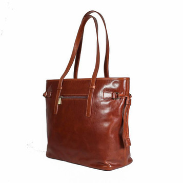 This luxurious Italian leather bag has a classic top flap over that is secured with a gold coloured push lock and is made in vegetable tanned leather. On the front there is an external pocket and on the back a zip compartment. The interior is divided into 2 with a side pouch and is plain lined, a side loop strap enables it to be worn on the wrist for when you need to be hands free.