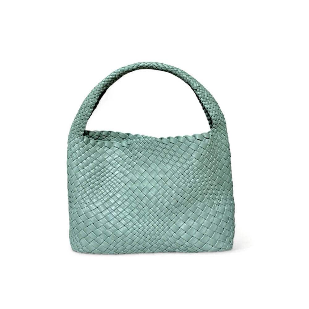 This stunning smaller sized Ghibli is an unstructured hobo,grab shoulder bag and is made in luxury leather that is vegetable tanned. It is expertly hand woven into a pattern called intrecciato, a complicated technique. The resulting leather requires no stitching and is stunning. There are two top woven leather handle and it opens via a gold coloured magnetic snap closure to reveal a single unlined compartment and a removable leather pouch, clutch with a metal chain for your valuables.