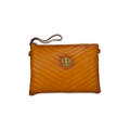 A beautiful quilted, slim clutch purse handcrafted in luxurious aged Italian leather that has a real depth of colour, making each unique. A medium sized clutch with zip closure and decorative logo detail. The single compartment is plain lined and comes with a detachable leather wrist strap.