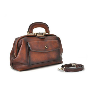 This traditional style Gladstone bag creates the perfect sized larger handbag, purse. Handcrafted in luxury, vegetable tanned, Italian leather that is more eco friendly and waxed to give an aged feel plus Italian travel badges. It has a single top handle, that is part covered with leather and a metal hinged top opening with 2 turn top lock closure. The spacious single interior compartment is plain lined with leather pockets for your phone and valuables plus a Pratesi internal LED light.