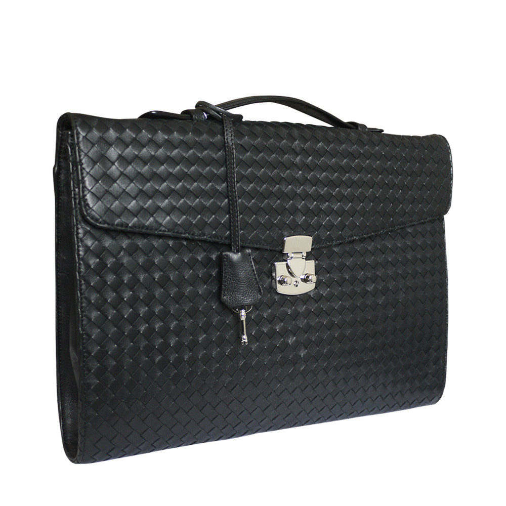 Fontanelli Aristea Designer Woven Leather Slim Business Briefcase - Black
